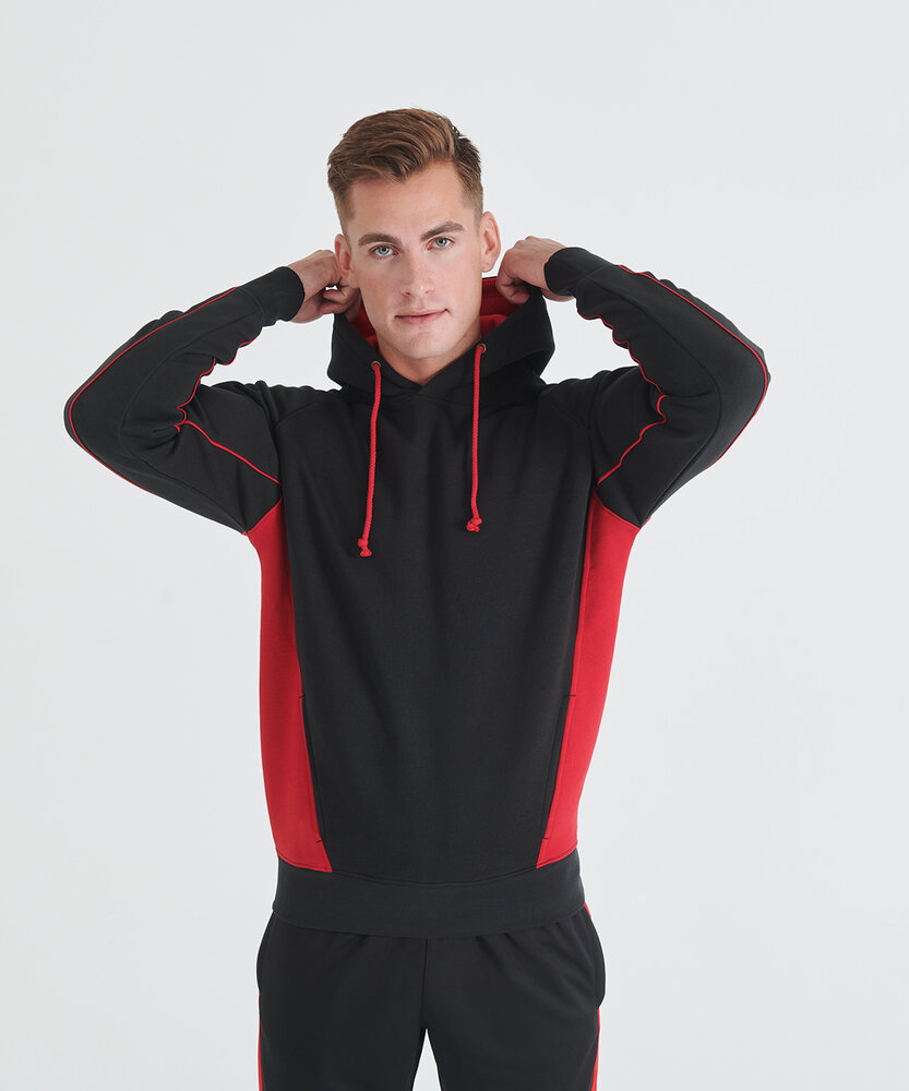 Contrast shaped side panelling, contrast piping on sleeve, raglan sleeves, Contrast lined hood, angled front pockets Also available in kids'